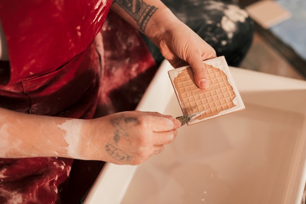 Другой распространённой ошибкой является неравномерное распределение затирки по поверхности. Это может привести к появлению пятен и разводов. Для предотвращения этой проблемы необходимо следить за тем, чтобы затирка наносилась в достаточном количестве и равномерно распределялась по всей поверхности плитки.